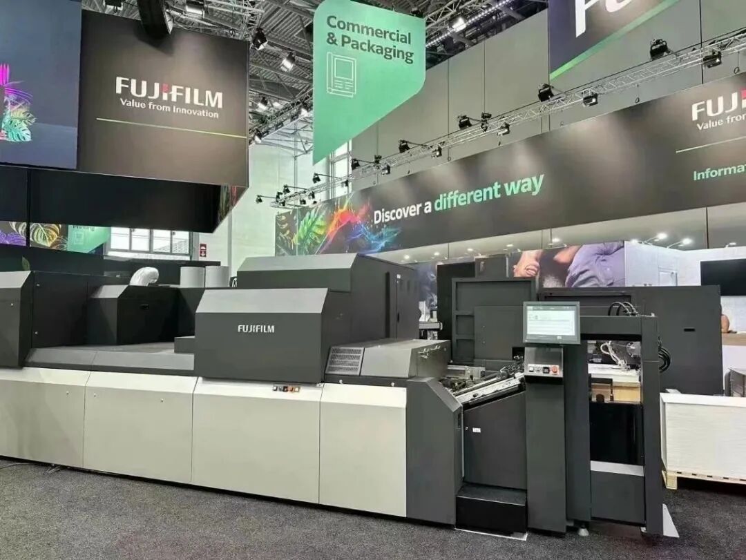 通過走訪發(fā)現(xiàn),本屆德魯巴展會上,眾多展商推出了大幅面數(shù)字噴墨印刷設(shè)備。瀾達(dá)推出新一代B1幅面的S11和S11P納米圖像印刷機(jī),全新型號的印刷機(jī)將提供極高的生產(chǎn)多功能性,同時(shí)達(dá)到11,200 sph的印刷速度;柯尼卡美能達(dá)重磅亮相的One Pass B1+數(shù)字噴墨印刷機(jī)MGI AlphaJet,創(chuàng)新地將四色印刷、干燥、局部UV和燙金等獨(dú)立工序整合成一體化的生產(chǎn)流程;惠普推出全新Indigo 120K HD數(shù)字印刷機(jī),速度高達(dá)6000張/小時(shí)(B2),每月可印刷超過兩百萬張(B2);佳能推出的新型B2+噴墨印刷機(jī)varioPress iV單面印刷速度為8,700sph,雙面印刷速度為4,350sph; 富士膠片帶來的B2幅面單張紙數(shù)碼噴墨印刷機(jī)Jet Press 750S,采用旗下SAMBA噴頭,現(xiàn)場連線UV光油,呈現(xiàn)的包裝應(yīng)用解決方案吸引了眾多專業(yè)觀眾…… ![]() ▲瀾達(dá)S11納米圖像印刷?印刷機(jī) ![]() ▲瀾達(dá)S11 P納米圖像印刷?印刷機(jī) ![]() ▲柯尼卡美能達(dá) One Pass B1+數(shù)字噴墨印刷機(jī)MGI AlphaJet ![]() ▲HP Indigo 120K HD數(shù)字印刷機(jī) ![]() ▲佳能推出的新型B2+噴墨印刷機(jī)varioPressiV ![]() ▲富士膠片 B2幅面單張紙數(shù)碼噴墨印刷機(jī)Jet Press 750S