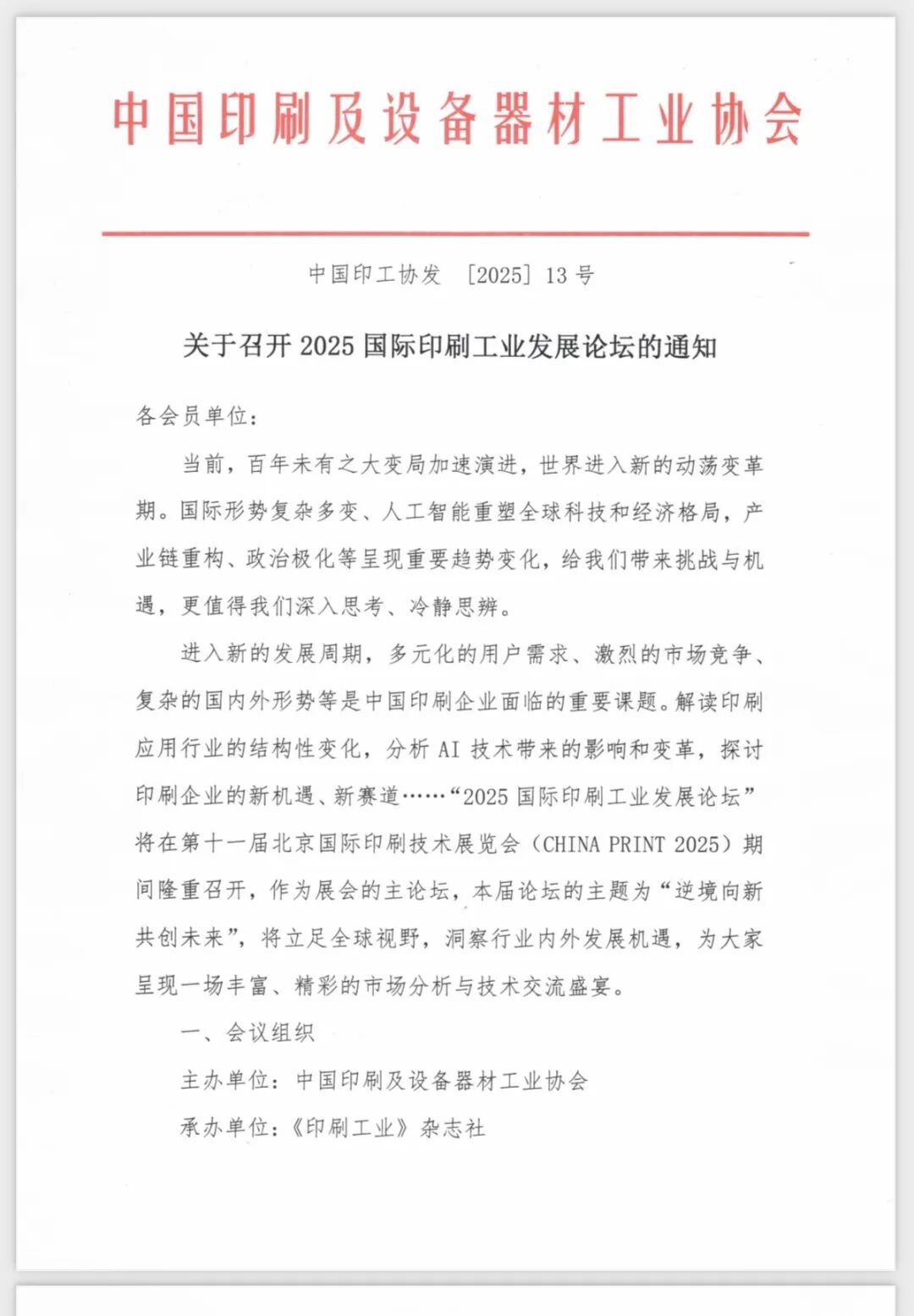 逆境向新,共創未來 | “2025國際印刷工業發展論壇”報名通道正式開啟!9