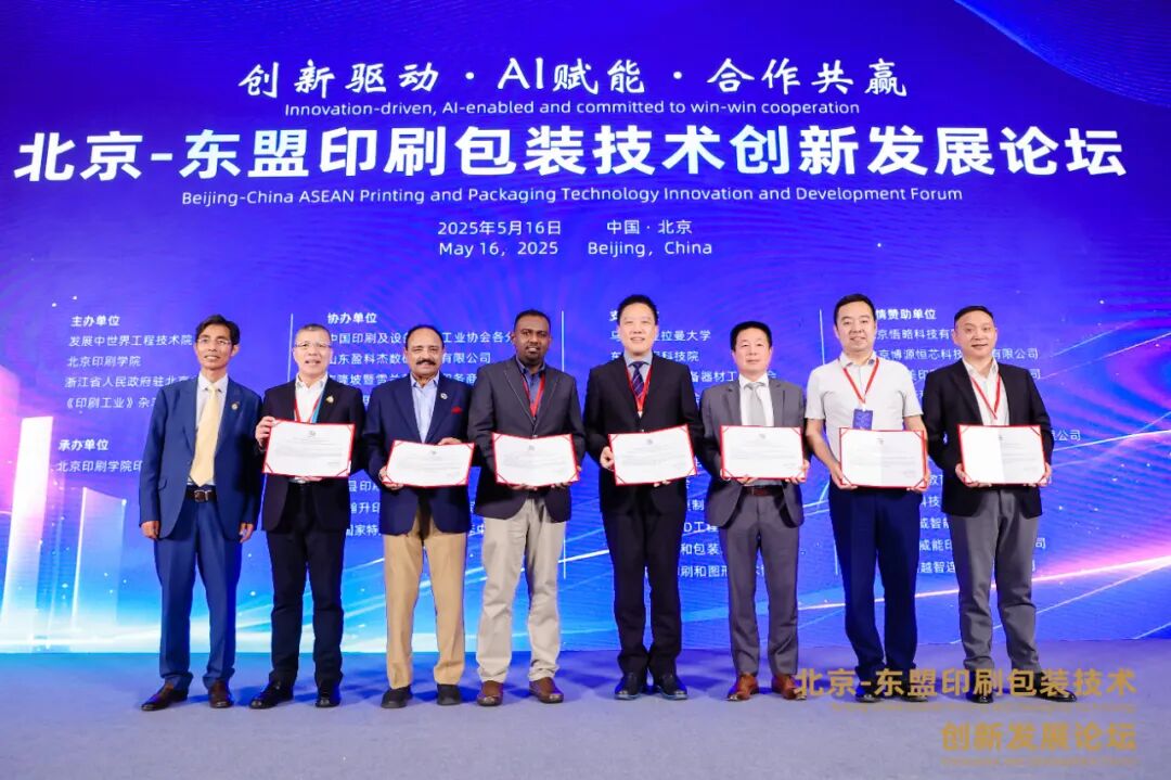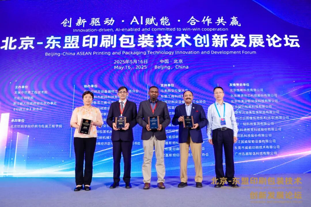 發表時間:2025-05-17 16:13作者:喬宇 在全球產業智能化轉型浪潮中,印刷包裝行業正迎來新的發展機遇。為促進區域產業協同創新,2025年5月16日,首屆"北京-東盟印刷包裝技術創新發展論壇"在北京隆重召開。 本次論壇獲得北京印刷學院、中國印刷及設備器材工業協會、浙江省人民政府駐北京辦事處等12家機構聯合支持,并得到聯合國教科文東亞辦事處、東盟工程科技院、發展中世界工程技術院、巴基斯坦工程院等國際組織和亞太地區印刷包裝行業協會的積極響應,彰顯出立足北京、輻射東盟、聯動全球的開放格局。來自中國及東盟各國的機構代表、行業專家、企業領袖等200余位嘉賓齊聚一堂,共商印刷包裝的可持續發展。 論壇以“創新驅動·AI賦能·合作共贏”為主題,匯聚政產學研多方力量,旨在構建跨國界、跨領域的產業協同創新體系。作為首次舉辦的印刷包裝領域國際高端對話平臺,本次論壇凸顯四大核心價值:搭建前沿技術展示窗口,集中呈現AI賦能智能印刷創新成果;構建產業升級智庫網絡,多位國際院士專家齊聚;深化區域產能合作,技術聯誼推動產業鏈上下游精準對接;培育數字智能時代人才梯隊,啟動“絲路工匠”培養計劃,建立跨國技術認證互認機制。