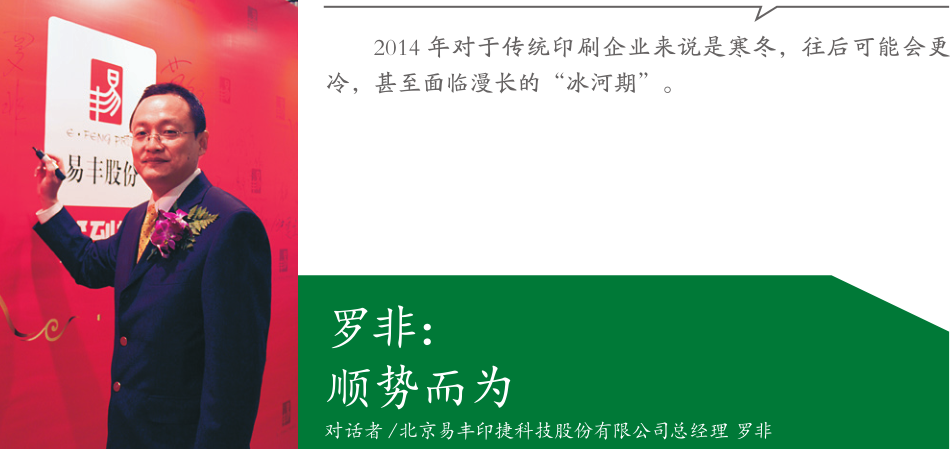 發(fā)表時間:2016-08-19 10:13 ![]() 時代的發(fā)展就是新事物不斷替代舊事物的過程,印刷行業(yè)的發(fā)展亦是如此——在經歷了“鉛與火”、“光與電”后,我們已然跨入了“數和網”的時代。但不管時代如何變遷,對于所有執(zhí)著而勇于探索的印刷人而言,未來的印刷發(fā)展路上,行者無疆。 回顧2014年的印刷業(yè),尤其是紙質圖書、報刊領域,我們毫無意外地看到了并不樂觀的下滑態(tài)勢。實則,幾年前報業(yè)印刷便出現下滑的表象,隨后是期刊印刷,目前已經蔓延到了書籍印刷。究其原因,主要是新媒體時代,互聯網、手機等電子媒體涌現而導致的閱讀方式的轉變。在這樣的大市場環(huán)境下,綠色印刷理念與機制的形成與建立、完善,使不少印刷企業(yè)亦感覺到“寒風瑟瑟”,企業(yè)經營舉步維艱——一方面是人力資源成本、原輔材料成本的逐漸提升,一方面是市場低迷、行業(yè)內惡性價格戰(zhàn)導致的20余年來一成不變的印刷工價——不斷受到夾擊而日益減少的利潤成為印刷企業(yè)難以掙脫的痛。在我看來,印刷企業(yè)的破解途徑,除了自身的開源節(jié)流、嘗試多種經營開拓新業(yè)務以外,還要提高企業(yè)自身的產能和自動化程度,減少生產過程中的用人環(huán)節(jié)。此外,大家應嚴格自律企業(yè)的市場行為,共同培育一個健康的市場環(huán)境。 眺望2015年的印刷行業(yè),或可用“喜憂參半”來詮釋。受上游市場變化的影響,印刷行業(yè)面臨的是一場“被洗牌”,如大浪淘沙一般,經過市場洗禮而留存下來的印刷企業(yè)或許可以看到充滿希望的未來,而那些無法適應行業(yè)發(fā)展節(jié)奏的企業(yè)只能被迫選擇放棄。但可以確信的是,洗牌后的印刷行業(yè)會有一個相對有秩序的發(fā)展狀態(tài)。 北京京師印務有限公司是一家綜合性的印刷服務企業(yè),我們的主要客戶群是主流出版社。公司一直考慮的是如何在做好傳統(tǒng)印刷服務的基礎上,開發(fā)具有前沿性的新技術;如何應用新技術更好地為客戶服務;如何保證新技術市場培育的健康性;如何提升企業(yè)未來發(fā)展的能力。正是基于這些出發(fā)點,公司于2012年開始接觸數字印刷,并與北大方正合作建立了數字印刷示范基地,引進了方正噴墨數字印刷機。此后,我們用了2年的時間,做了一件事情,在客戶群中推廣數字印刷,使客戶認識及認可數字印刷。以往,出版社在確定印刷數量時依據的并不是書籍的征訂數量,而是傳統(tǒng)印刷的起印數,其并未把隱性的成本,如未銷售書籍的庫存管理、物流,以及最后的報費等成本,納入考核的范圍,追求的只是印制碼洋和銷售實洋。通過與客戶的交流探討,我們逐步使更多的客戶認識到數字印刷可以幫助他們實現按需出版,一本起印,真正做到零庫存,減少隱性成本發(fā)生,規(guī)避無效資金的投入和占用。經過2年的努力,我們的工作確也取得了一定的成果,現下,很多出版社客戶已經開始意識到數字印刷、按需出版對于自身發(fā)展的裨益,交給我們的數字印刷業(yè)務也多在1000份以下。 在未來相當長一段時間內,傳統(tǒng)印刷與數字印刷會并頭前行,我確信,數字印刷符合節(jié)能減排、降低能耗的綠色環(huán)保要求,是印刷業(yè)發(fā)展的一個方向。所以,在2015年,北京京師印務有限公司還會繼續(xù)發(fā)展數字印刷,同時對傳統(tǒng)印刷設備進行改造,使企業(yè)盡快實現自動化、高效能。更好地為客戶提供服務,更好地服務社會。 ![]() 2014年是傳統(tǒng)印刷行業(yè)并不景氣的一年,就我所了解的印刷企業(yè),2014年的業(yè)務量都沒有超過2013年。書刊印刷和商務印刷市場由于受到數字出版、互聯網以及移動終端媒體的沖擊較大,正處在萎縮之中。這從2014年的上海全印展上可以看出端倪——參展的數字印刷設備和包裝印刷設備占據了90%以上的參展面積,而傳統(tǒng)的印刷設備和裝訂設備卻寥寥無幾。總之,2014年對于傳統(tǒng) 印刷企業(yè)來說是寒冬,往后可能會更冷,甚至將面臨漫長的“冰河期”。 易豐的經營業(yè)績大體和去年持平。2014年,出版社書籍印刷業(yè)務增長30%,業(yè)績喜人;但商務印刷領域的大客戶訂單嚴重萎縮,大約只有2013年的一半。往年,易豐的營業(yè)額中書籍印刷和商務印刷的業(yè)務各占一半。眼看2014年易豐的業(yè)績就要萎縮20%以上,所幸蜂印網的業(yè)務緩解了這種“陣痛”。自從2014年5月易豐參加了科博會,蜂印網便以每天增加一位印刷客戶的水平穩(wěn)定增長,這還是在沒有網絡推廣投入下實現的。現在蜂印網的客戶都是靠口口相傳的口碑積累的,且客戶的消費情況也基本上屬于客單價較低的試探性消費,但是目前蜂印網已經出現年消費金額在50萬~100萬元的客戶,今后蜂印網將在客單價上下功夫。 2014年12月,易豐經過慎重研究后決定在書籍印刷上取消起印量,并實現48小時交貨、代為包裝和分發(fā)、客戶全程監(jiān)控印刷進度。這樣一來,印刷1000冊圖書,相比原來按照3000冊起印,減少了50%的印費,印刷2000冊圖書,相比原來減少了28%的印費。這在出版行業(yè)引起了較大的反響,大多數出版社對此表示歡迎。 得到認可的同時,易豐接受到的疑問也有不少:現在的印費這么低,易豐取消起印量,等于對3000冊以下書籍的印刷費用又打了3~9折,還能掙錢嗎?若不賺錢,這種方式可以持續(xù)