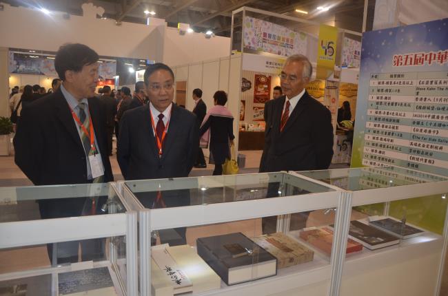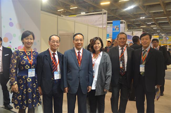 徐建國理事長(圖中)視察中華印制大獎優秀作品展區 專區匯集了力嘉、中華商務、興臺彩印、大華紙品等20余家來自港澳臺及內地的知名印刷企業或印刷相關企業,他們通過優秀產品和企業形象的生動展示,為觀眾詮釋了中國印刷的力量;而專區特別開設的第5屆中華印制大獎優秀作品展“專柜”亦成為展示中國印刷水平與實力的重要窗口,眾多設計精巧、印制精美、裝幀精致的高水平作品引來觀者頻頻駐足,贊嘆不已。