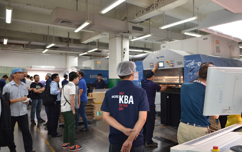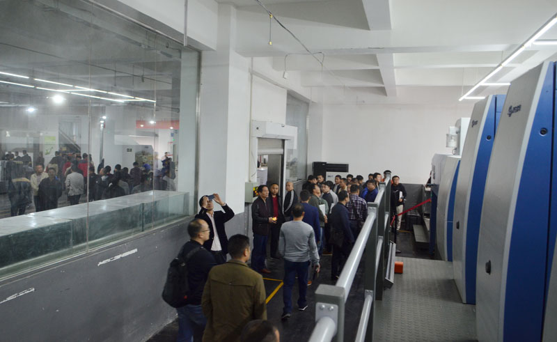 圖6:參會嘉賓在鄭州盛大彩色印刷有限公司參觀并觀看高寶利必達145-4 SPC的現場演示