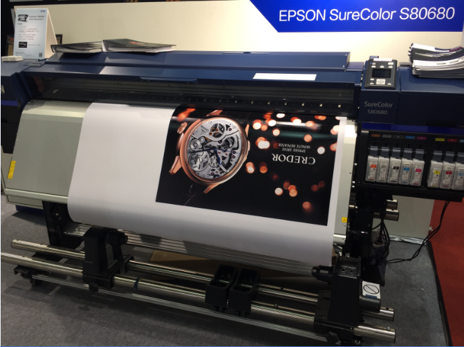 (P20080吸引觀眾圍觀詢問) 在展會現場,Epson SureColor P9080大幅面噴墨打印機是愛普生唯一一臺潘通色彩覆蓋率達到99%*(此數據基于愛普生公司內部實驗室測試結果)的設備,滿足包裝打樣和高端影像的打印需求,圖像色彩層次更加豐富,飽和度更高。P9080使用11色愛普生“活的色彩HDX”顏料墨水系統,黑色墨水技術與P20080相同的,增加了橙色、綠色墨水,根據用戶自身打印需求選配紫羅蘭色或淡淡黑色墨水,紫羅蘭色帶來更寬廣的色彩范圍,淡淡黑色則實現更佳的黑白打印效果,配合高品質、高性價比的愛普生虹彩世紀高品質打樣紙,色彩還原更加精準、穩定。 愛普生微噴寫真 助力高端廣告行業用戶的業務增值 針對廣告圖文市場,愛普生帶來了64英寸幅寬的Epson SureColor S80680微噴寫真機,這款高品質型設備基于愛普生成熟而高端的專業影像行業基礎,配備愛普生PrecisionCore微壓電噴頭,使用愛普生“活的色彩GS3 Red”十色墨水,新增添的紅色墨水,大大提升了打印圖像黃色和紅色空間的色域范圍;黑色墨水濃度更高,帶來了更深沉的色彩表現,完全勝任高品質燈片、玻璃貼、高清車貼和海報等高端廣告宣傳類產品的輸出,實現高端廣告行業用戶的業務增值。