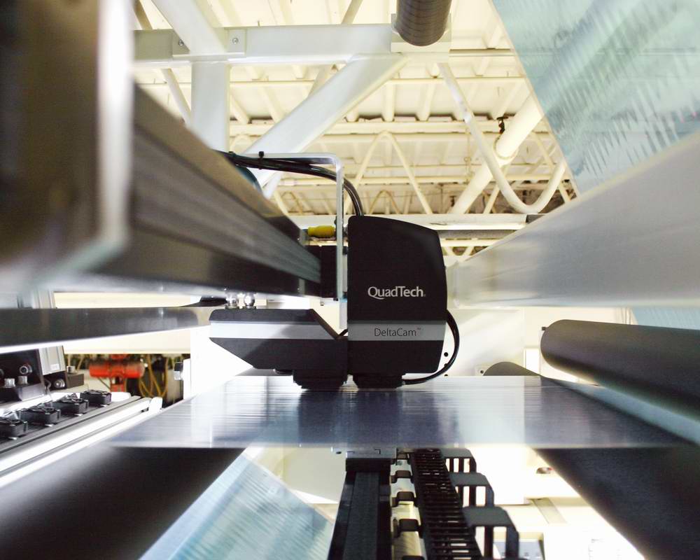 圖4: QuadTech 數字油墨系統將墨斗替換為計算機控制的注射噴墨器,通過測量為每塊控制區域泵送的準確油墨量,可以為整張印刷圖像提供精準的油墨密度控制。 配備 MultiCam? TRIM? 的套準引導系統價格非常經濟實惠,是適用于報紙印刷企業的高級套色和裁切控制系統。MultiCam TRIM 系統專為單幅、單折頁機報紙印刷應用而設計,可提供一套易于操作的簡易功能,并且通過完美可靠的套準實現高印刷質量與低成本。