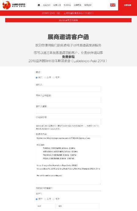 由中國印刷及設備器材工業(yè)協(xié)會(簡稱:中國印工協(xié))支持,即將于今年12月3—6日在上海新國際博覽中心舉辦的第九屆亞洲國際標簽印刷展覽會(Labelexpo Asia 2019)已為參展商準備了一系列免費的增值服務,包括:《在線電子郵件觀眾邀約》、印刷版《觀眾邀請函》、客制化的《展商電子名片》、在專業(yè)媒體刊登展前預覽等等,以幫助展商全面提高參展效果,讓更多、更專業(yè)的觀眾進入展館參觀,了解標簽業(yè)內(nèi)最新技術(shù)和發(fā)展動向。 錦囊一:在線電子郵件觀眾邀約(強力推薦?。?/span>。